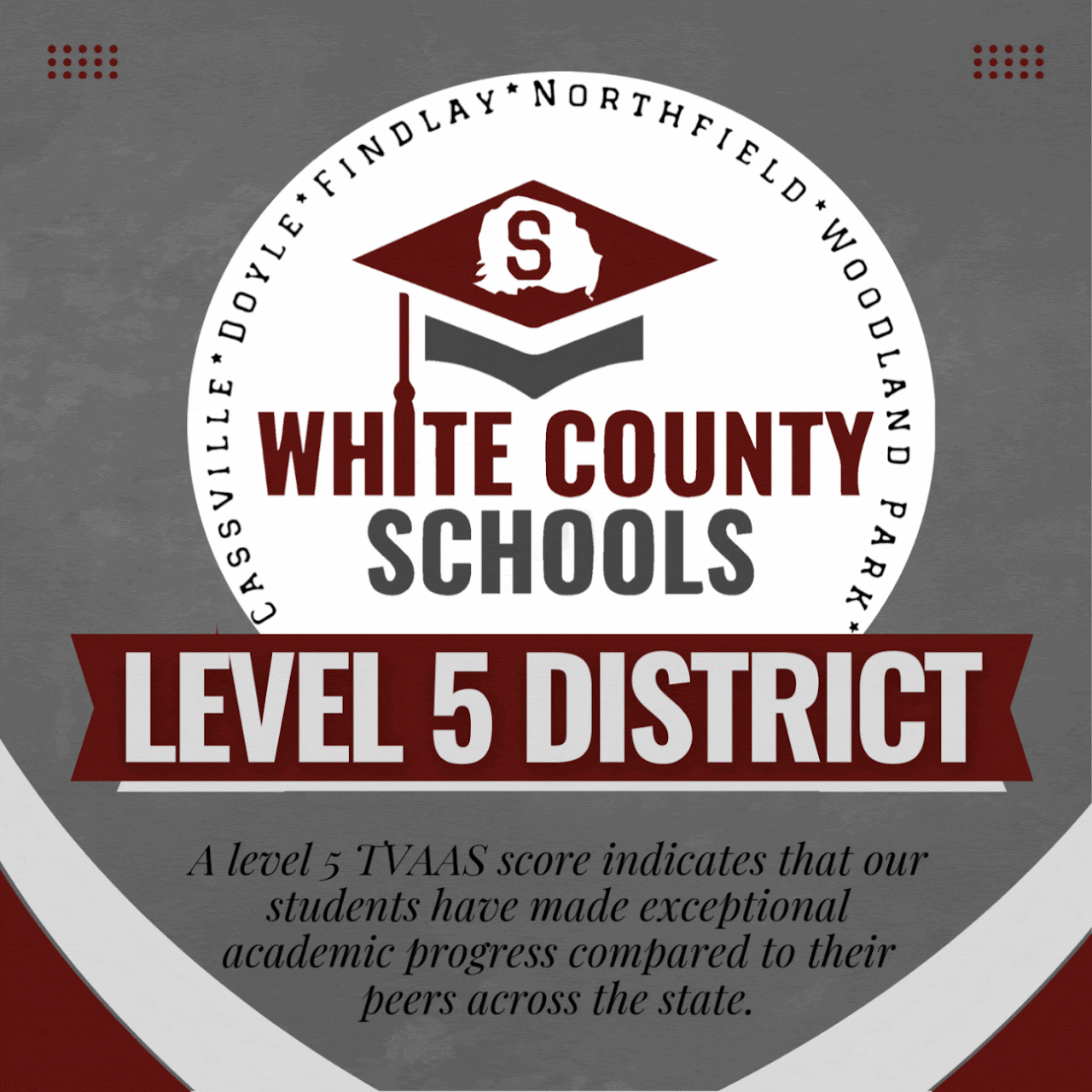 White County Schools is proud to announce a Level 5 Tennessee Value-Added Assessment System (TVAAS) score once again for the 2024-2025 school year! This top score means our students are growing at ...